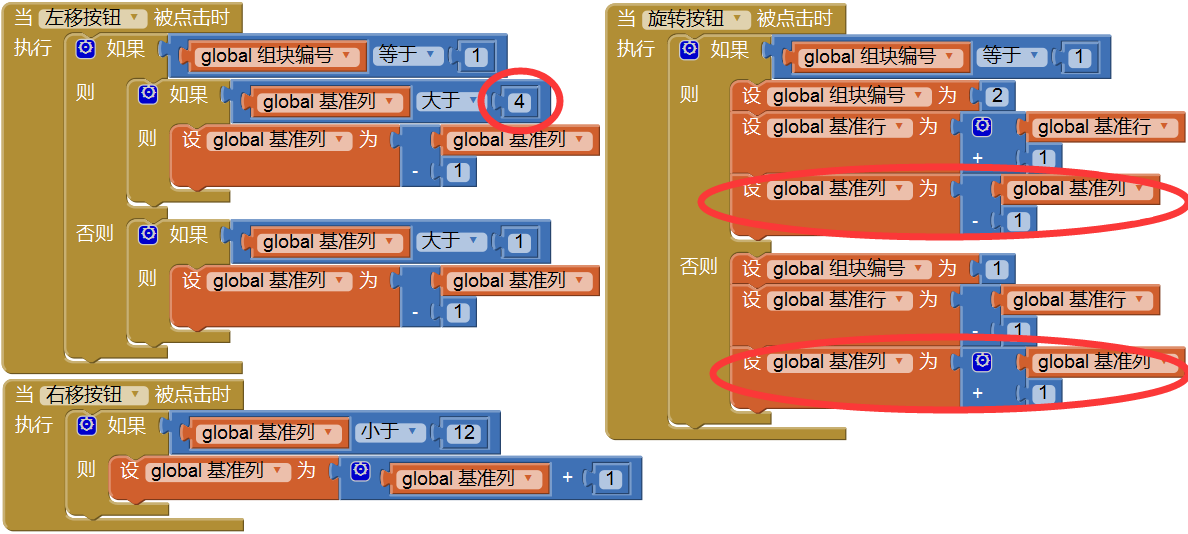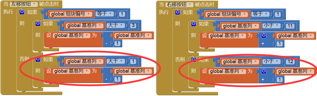 - 右移按钮点击事件处理程序:右移的条件改为“基准列<12”;