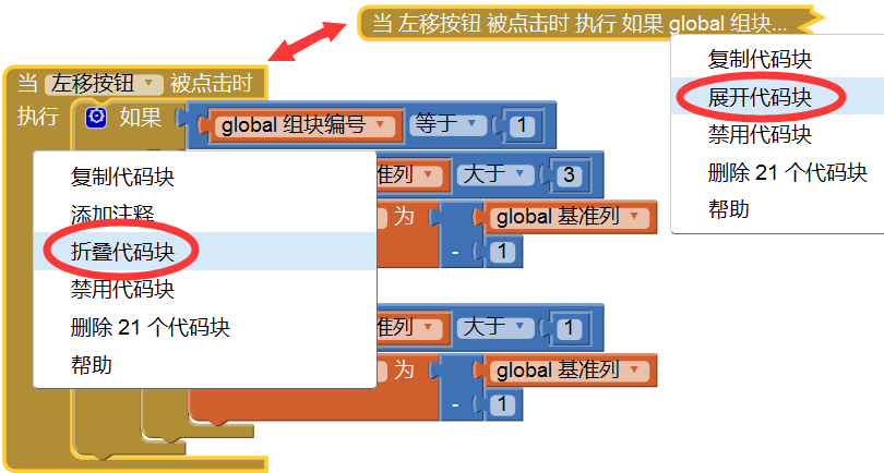 当我们编写一个规模较大的程序时,编程视图的操作区内会有很多代码块,将它们折叠起来,可以节省显示空间,并有助于对代码的管理和查阅。