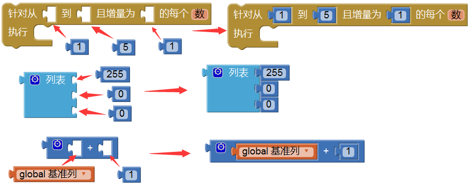 1、输入项:在App Inventor中,有许多带有空缺的块,如图7-18中的循环语句、加法块及创建列表块等,在使用这些块时,要用数字、文字或变量等来填充这些空缺。这些空缺就是“输入项”。